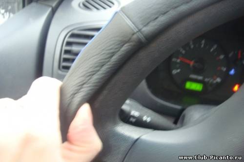 =) Спасибо за ответ! Я постараюсь сфоткать. И выложу фотографию. Ушивать - это и правда слишком сложно=)) И не уверена, что выйдет эстетично. Видимо, оплетки даже одного размера слегка разные. Жаль, нельзя их на руль примерить перед покупкой) Добавлено (19 Март 2009, 22:00) --------------------------------------------- ТигРРРа, привет! Постараюсь присоединить фотки моей оплетки! Правда, не уверена, что на них будет видно, в чем проблема. =)) Добавлено (19 Март 2009, 22:06) --------------------------------------------- вот они! (если прикрепятся) Мой молодой человек называет это люфтом=)) ну типа прстранство полое между рулем и оплеткой. во как=)) общий вид вид сверху руля а это я туда палец засунула