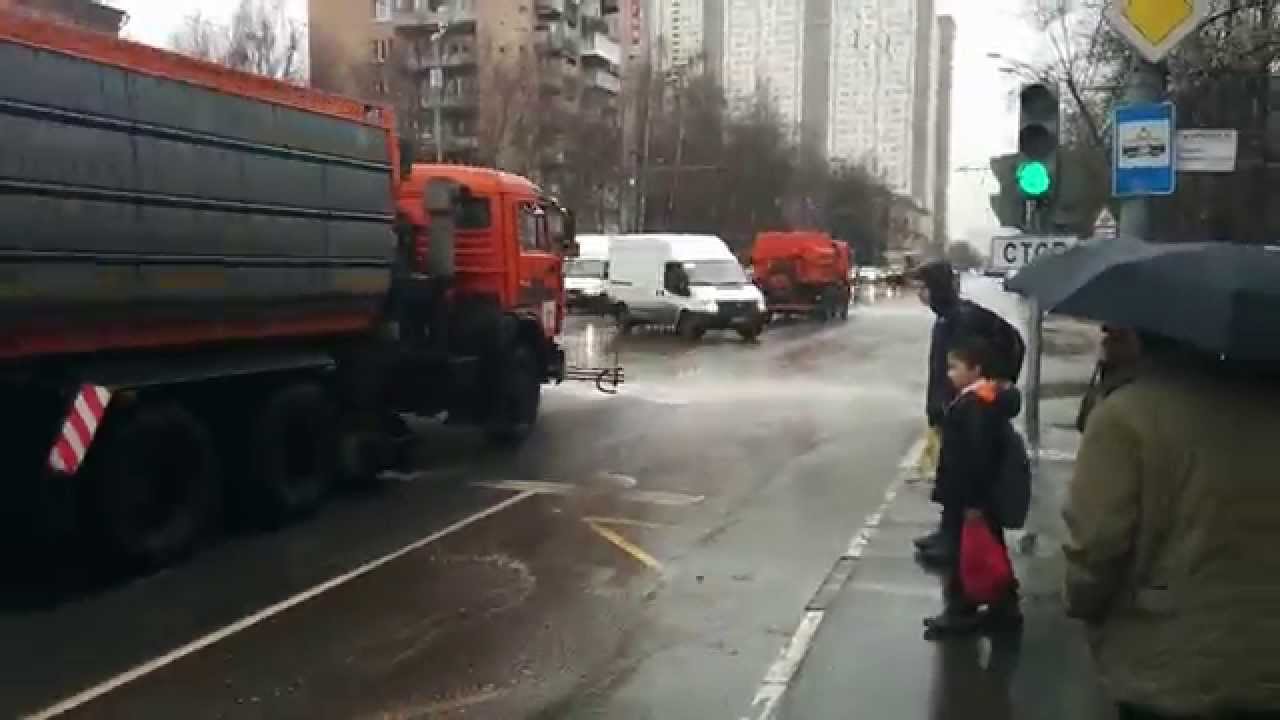 По его словам, такой способ уборки дорог – это чисто «московское изобретение» Заместитель мэра Москвы по вопросам ЖКХ и благоустройства Петр Бирюков заявил в интервью РИА Новости, что в дождливую погоду на дорогах работают поливомоечные машины, чтобы лучше очистить город. Когда идет дождь, все равно есть какие-то выхлопы газа, какие-то остатки грязи начинают размокать. Поливомоечная машина под давлением моет улицу и всю размокшую грязь сбивает водоприемным устройством, и она (грязь — ред.) уходит с улиц. Нужно вам провести стирку белья — вы же его сначала замачиваете, а потом начинаете отстирывать Петр Бирюков заместитель мэра Москвы по вопросам ЖКХ и благоустройства Он также назвал такой способ уборки дорог «московским изобретением». |